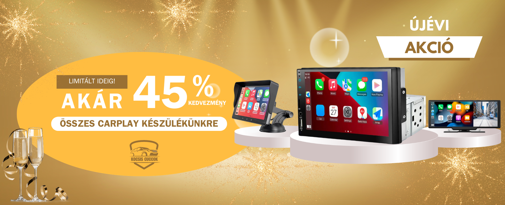 Fedezd fel KEDVEZMÉNYES ÁRAINKAT! Akár 45%-os kedvezménnyel vásárolhatod meg bármelyik Carplay Készülékünket ÚJÉVI Promóciónk keretein belül!